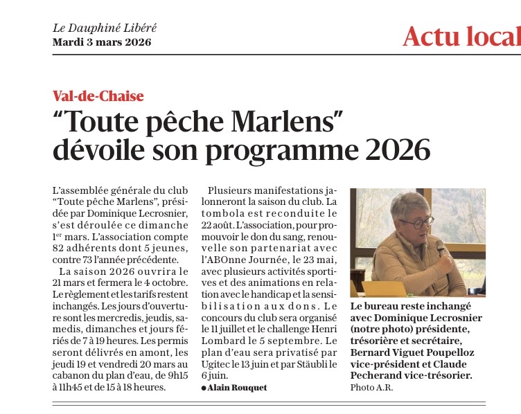 L’assemblée générale du club Toute Pêche Marlens s’est tenue dimanche 1er mars, présidée par Dominique Lecrosnier, en présence de Sébastien Scherma,