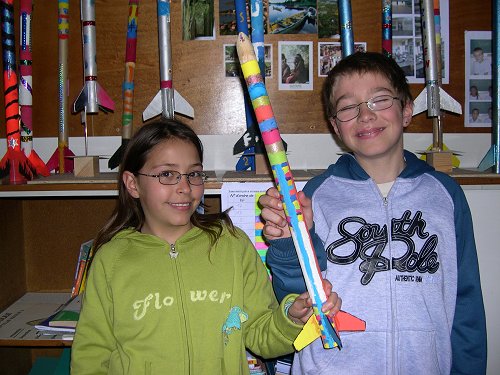 La fusée muticolore et l'un de ses techniciens qui a abusé du génépy... (Vanessa, Flora, Flavia, Yoan)