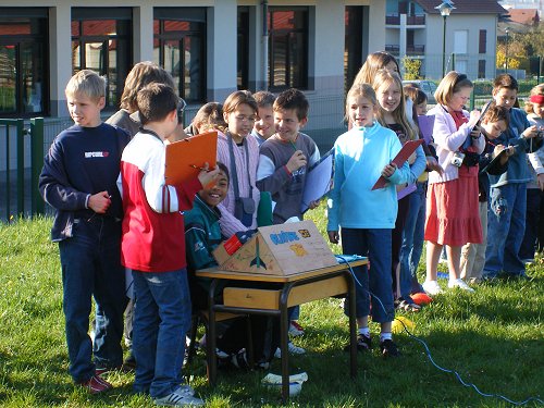 Flavia : "Au départ, avant le tir , j'ai eu un gros stress. Ensuite, pendant le compte à rebours, j'avais envie d'éclater de rire. Et puis... non, elle ne s'envole pas !!! Ouf, au deuxième essai, elle décolle ! Quand on l'a récupérée, il y avait un gros bouquet... de terre au bout !!!" Laura : "Au départ, j'avais un grand sentiment de peur. Je craignais que le parachute ne sorte pas et que la fusée tombe sur la tête de quelqu'un. Et javais peur aussi que la fusée ne décolle pas car cela a représenté beaucoup de travail pour la préparer." |