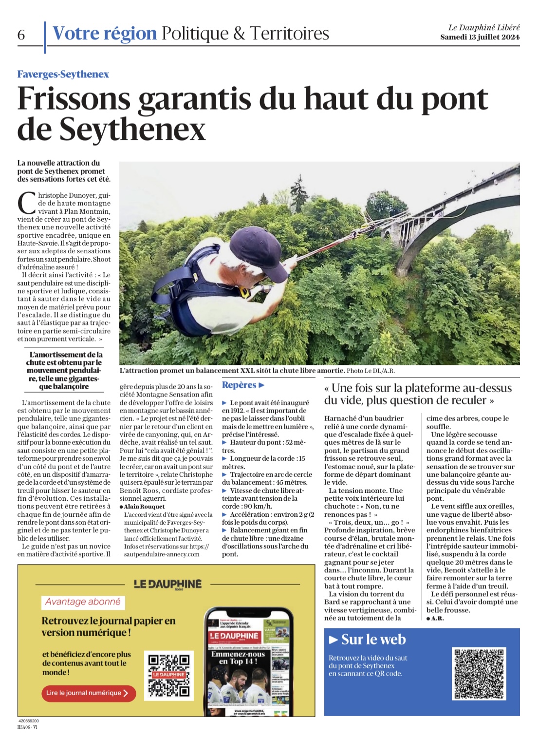 Dauphiné Libéré du 13 juillet 2024