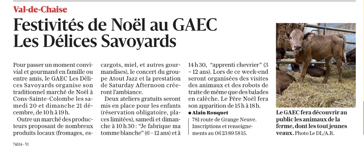 Dauphiné Libéré du 13 décembre 2025